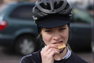 Tini is quite small in stature, so her nickname suits her petiteness. Although small, she is a dynamo in races, taking three consecutive victories in the time trial, road race, and finally winning the criterium solo.